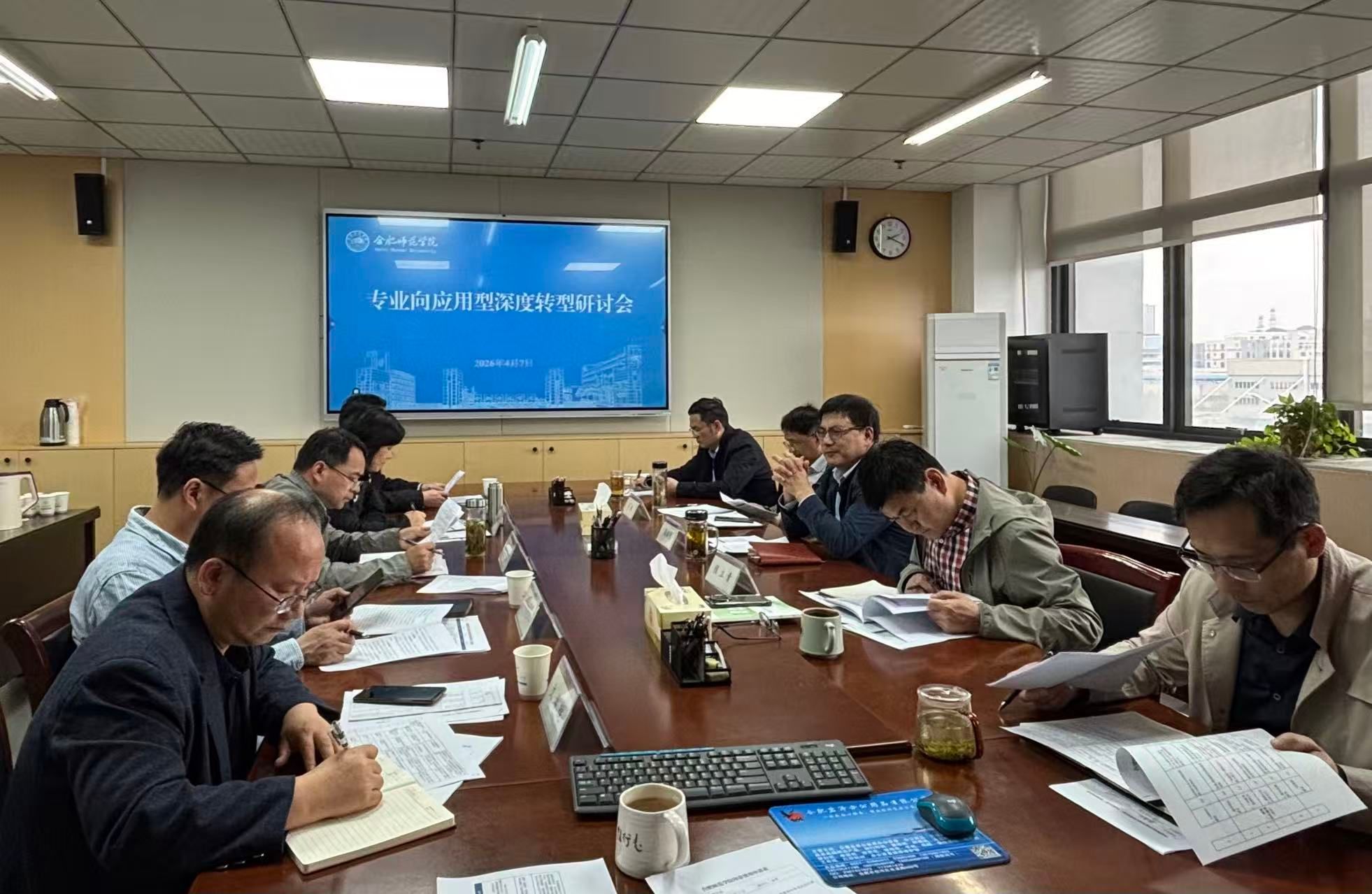 随后,计算机与人工智能学院、生物与食品工程学院、文学院、美术与设计学院、体育科学学院、就业创业工作处就转型思路、现有基础、面临的困难进行了汇报交流。大家一致认为,推进应用型深度转型是学校发展的必然选择,并分享了在对接产业、共建课程、人才培养改革等方面的初步探索与思考。