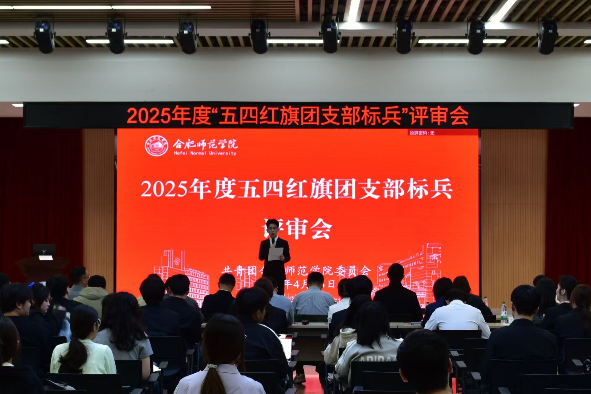 4月15日中午,学校在锦绣校区大学生活动中心举行2025年度“五四红旗团支部标兵”评审汇报会。校团委、就业创业工作处、组织部、学生工作处、财务处负责人及各二级学院分团委书记作为评委出席会议,来自各二级学院的辅导员、团支部书记和学生代表参加会议。