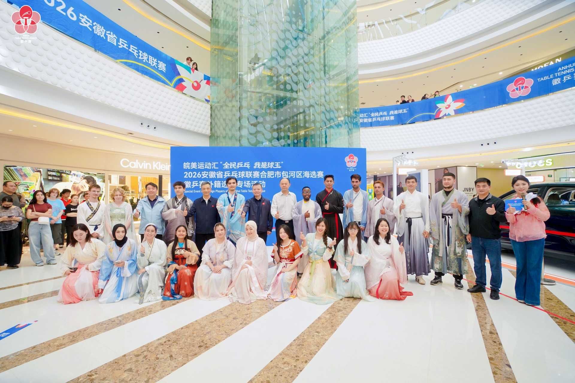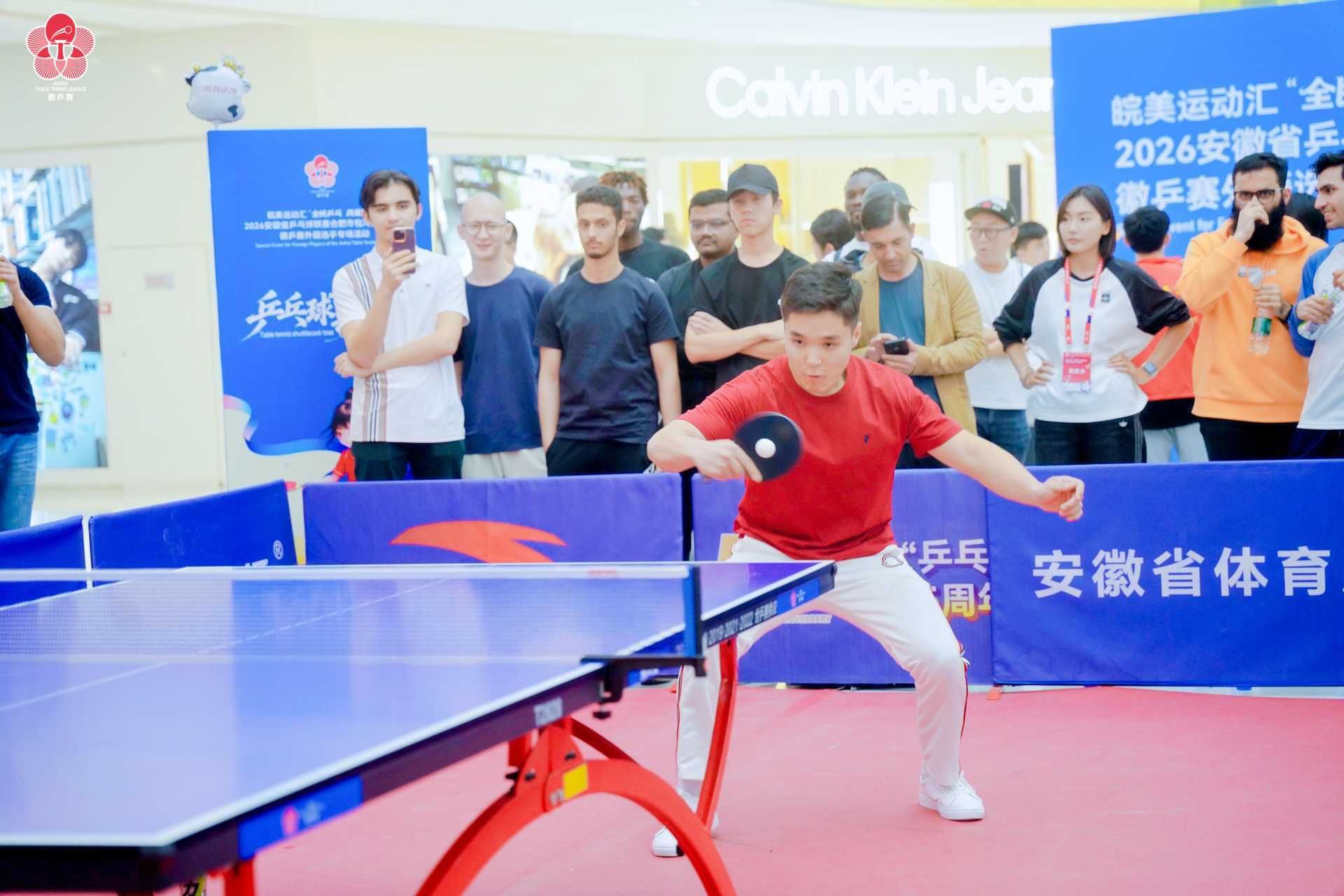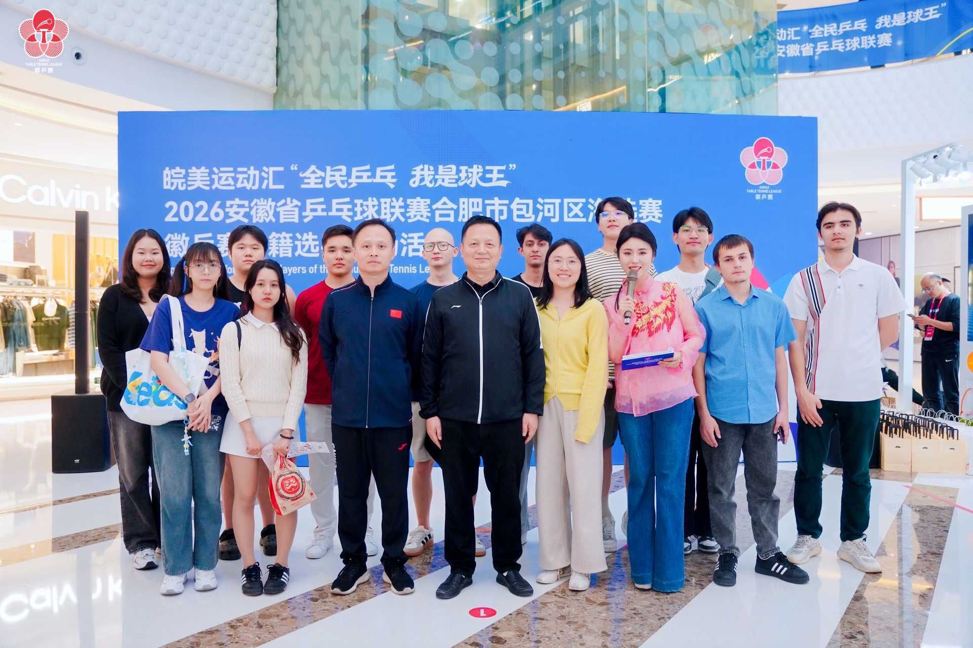 4月26日,beat365官网13名国际学生应邀参加由安徽省体育局等单位主办的2026“徽乒赛”外籍选手专场活动,该活动在合肥包河万达广场举行。活动邀请了来自安徽大学、合肥工业大学、安徽农业大学、安徽中医药大学、合肥大学和beat365在线唯一官网共6所高校来自37个不同国家的100余名国际学生参加。