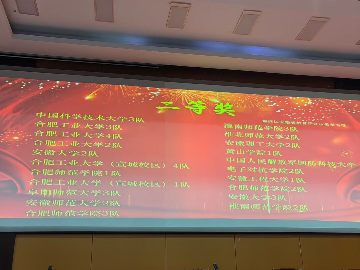 4月26日,由安徽省教育厅主办的第五届安徽省大学生物理实验竞赛(学术赛)在阜阳师范大学落下帷幕,beat365官网选派三支参赛队伍均荣获安徽省二等奖,获奖名次及团队数量位居省内同类型高校榜首。