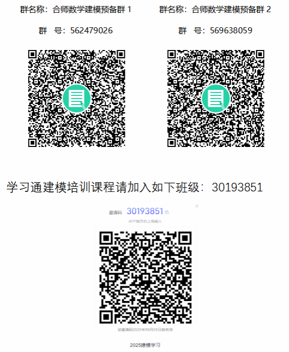 预报名(包括校赛报名)截止到2025年6月30日24时,直接加入下方QQ群进行报名(两个QQ群都可报名)。校赛赛题及比赛时间在QQ群另行发布。