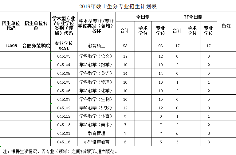 学科教学(数学)、学科教学(英语)、学科教学(物理)、学科教学(化学)、学科教学(生物)、学科教学(思政)、学科教学(美术)、教育管理名额较多,学科教学(语文)、心理健康教育、有少量名额。
