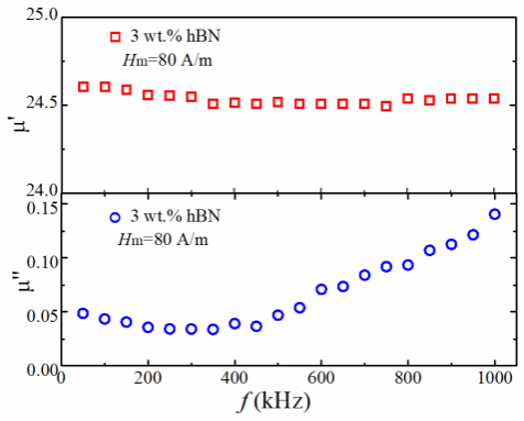 图三 hBN含量为3 wt.%的FeSiAl/hBN样品磁谱与频率f的关系