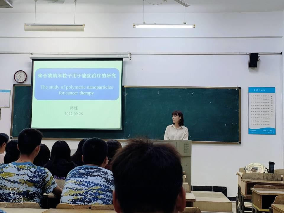 本网讯 9月26日晚,化学与化学工程学院韩钰博士在锦绣校区博约楼107教室举行了题为“聚合物纳米粒子用于癌症治疗的研究”行知讲座,化学、化工、制药、药剂等专业学生聆听了此次讲座。