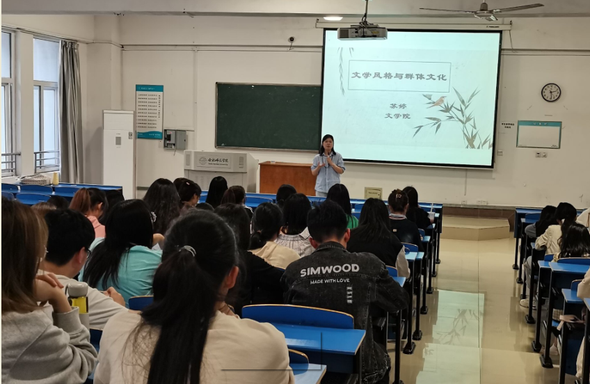 本网讯 5月11日下午,文学院副教授苏婷老师在锦绣校区逸夫楼A106教室举行了主题为“文学风格与群体文化”的学术报告,文学院2020级汉语言文学专业(师范)的学生到场聆听了报告。