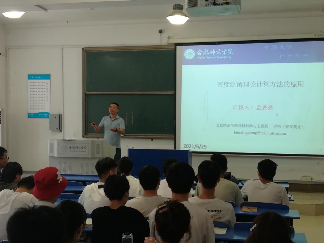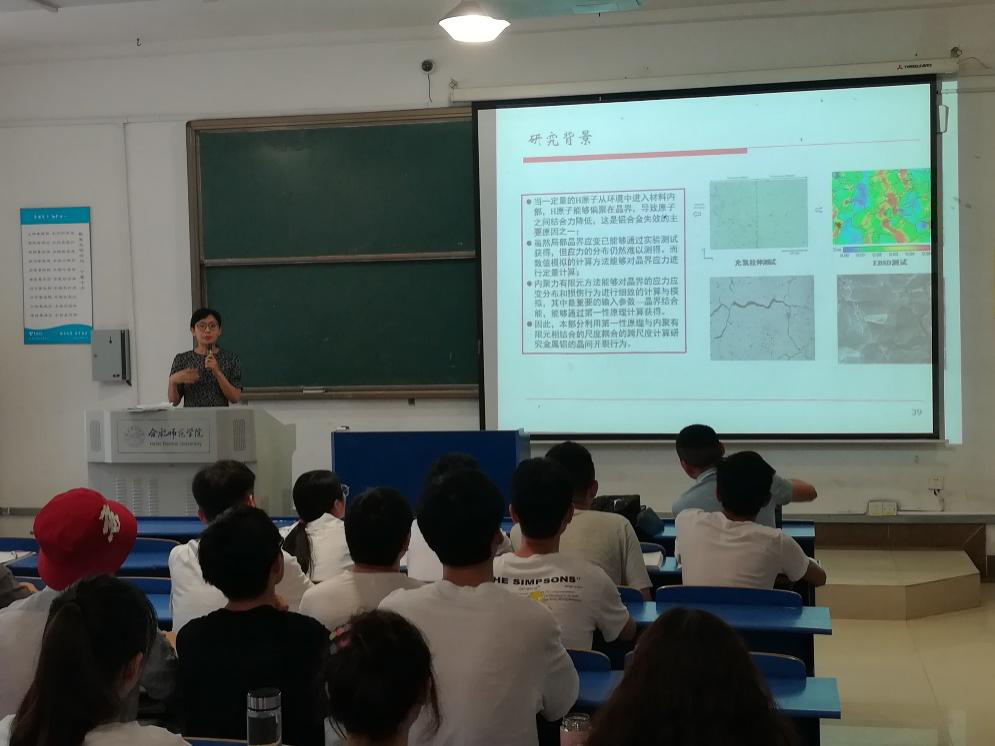 本网讯 6月29日,物理与材料工程学院陈琳、魏薪、许巧玲、孟强强4位博士在锦绣校区逸夫楼A101分别为学生做了材料科学与工程方向前沿科学研究的学术报告,2018、2019级材料科学与工程专业学生聆听了报告。