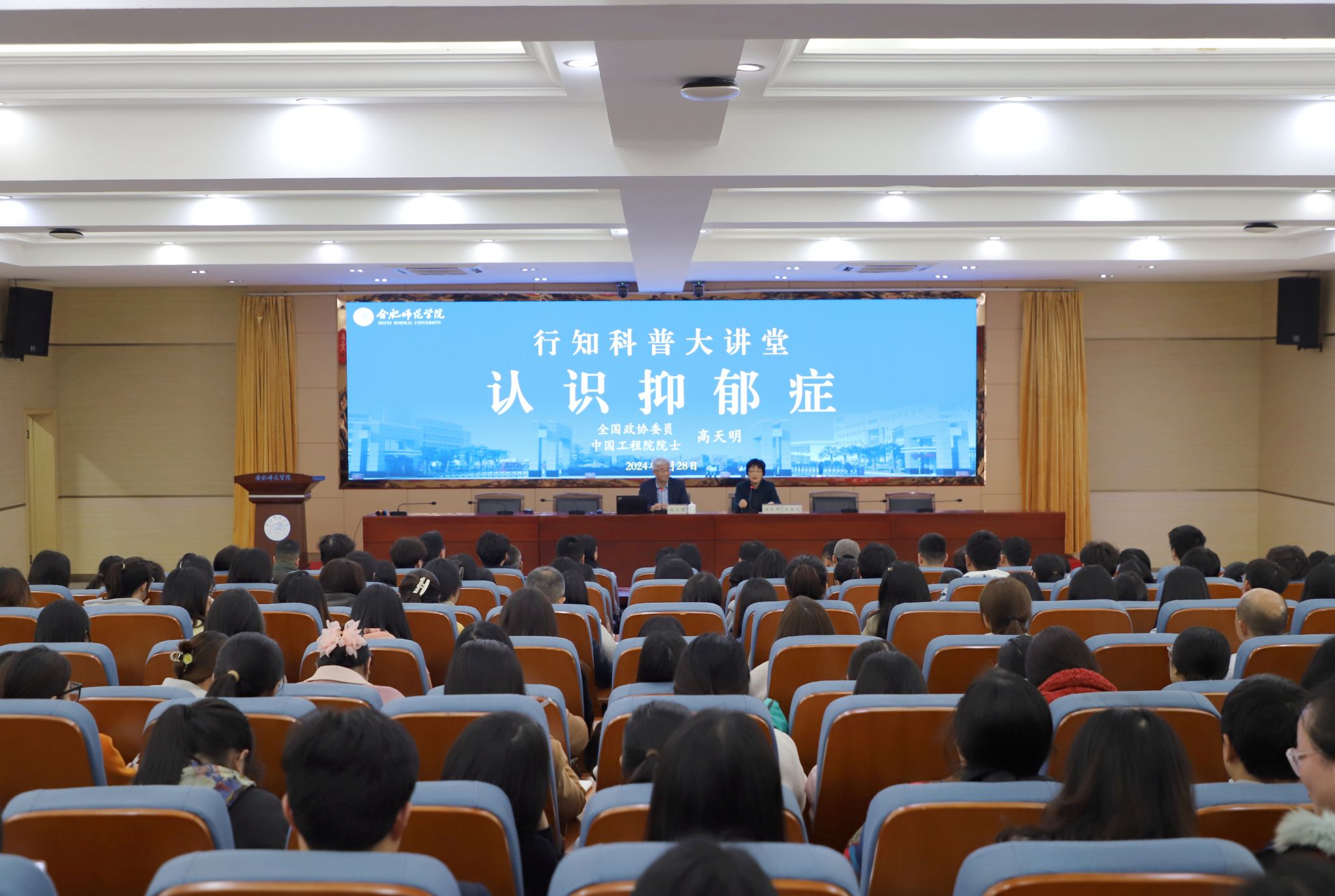 3月28日下午,全国政协委员、中国工程院院士高天明应邀来校作“认识抑郁症”的专题科普讲座。讲座于beat365在线唯一官网锦绣校区学术报告厅举行。安徽省、合肥市、包河区政协领导和三级政协委员、合肥市中小学部分校长及教师代表以及我院教职工代表共计300多人参加讲座。本次讲座由院党委副书记、院长方东玲主持。