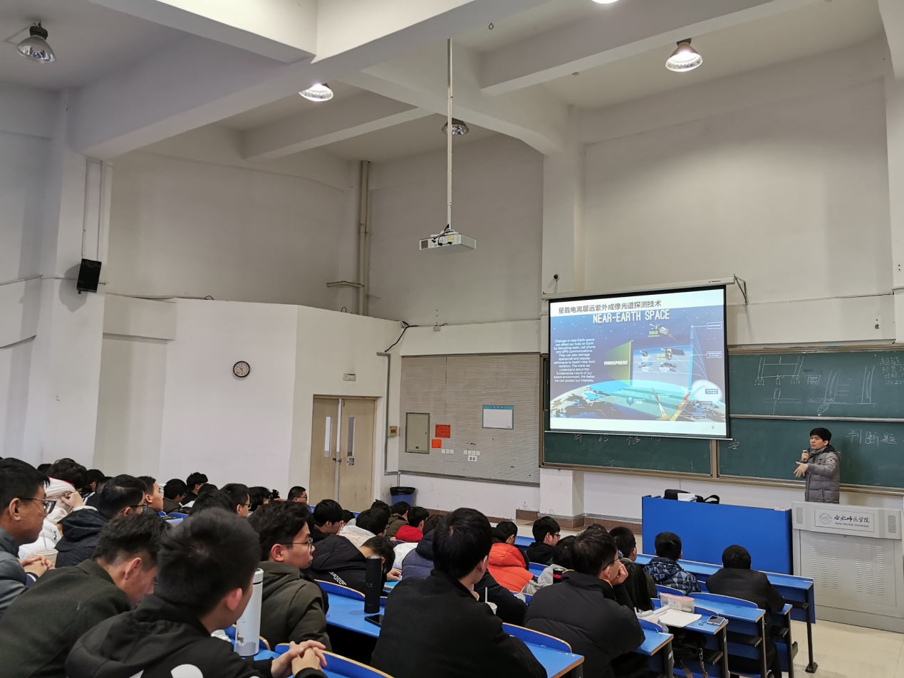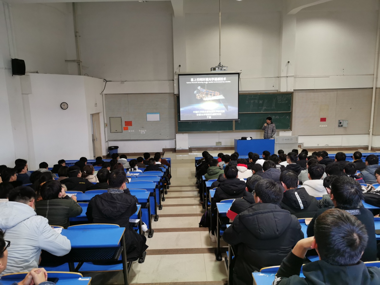 本网讯 12月2日上午,应电子信息与电气工程学院邀请,中国科学院合肥物质科学研究院于磊研究员在锦绣校区逸夫楼西阶二作了题为《星上空间环境光学遥感技术》的报告。电子信息与电气工程学院骨干教师及200多名学生聆听了报告。