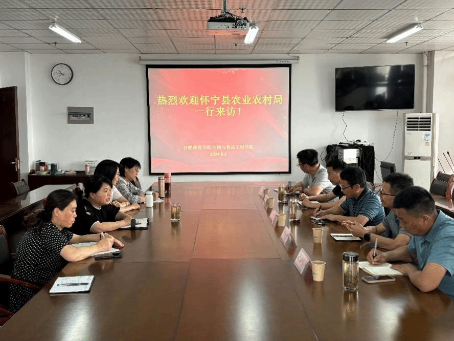 6月2日上午,怀宁县农业农村局党组成员、总农艺师王育红、怀宁县蓝莓产业发展服务中心副主任夏国钧、怀宁县农业农村局乡村产业发展股负责人胡以华、安徽农业大学皖西南综合试验站站长徐支青、怀宁县现代农业技术合作推广服务中心副主任卢秀兵一行到访生物与食品工程学院,就蓝莓产业化发展问题召开合作洽谈会。生物与食品工程学院院长朱桂兰、蓝莓工程技术研究中心主任徐德聪以及王朝霞、鲁红侠等老师参加洽谈。