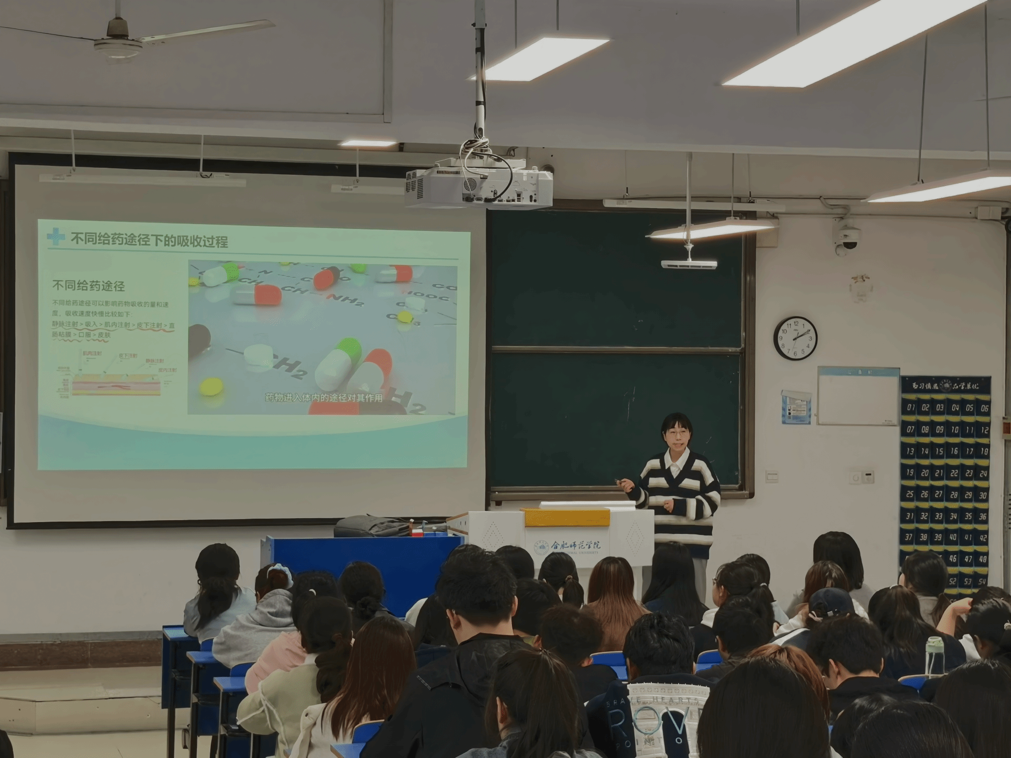 11月7日下午,生物与食品工程学院卢璇博士在锦绣校区逸夫楼A301教室作题为《药物的体内过程及双重性案例分析》的行知讲座。学院副院长陈金武远程指导,生物制药和食品质量与安全专业学生共同参与。