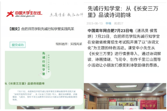《安徽日报》《中青网》等多家媒体关注报道生物与食品工程学院行知学堂