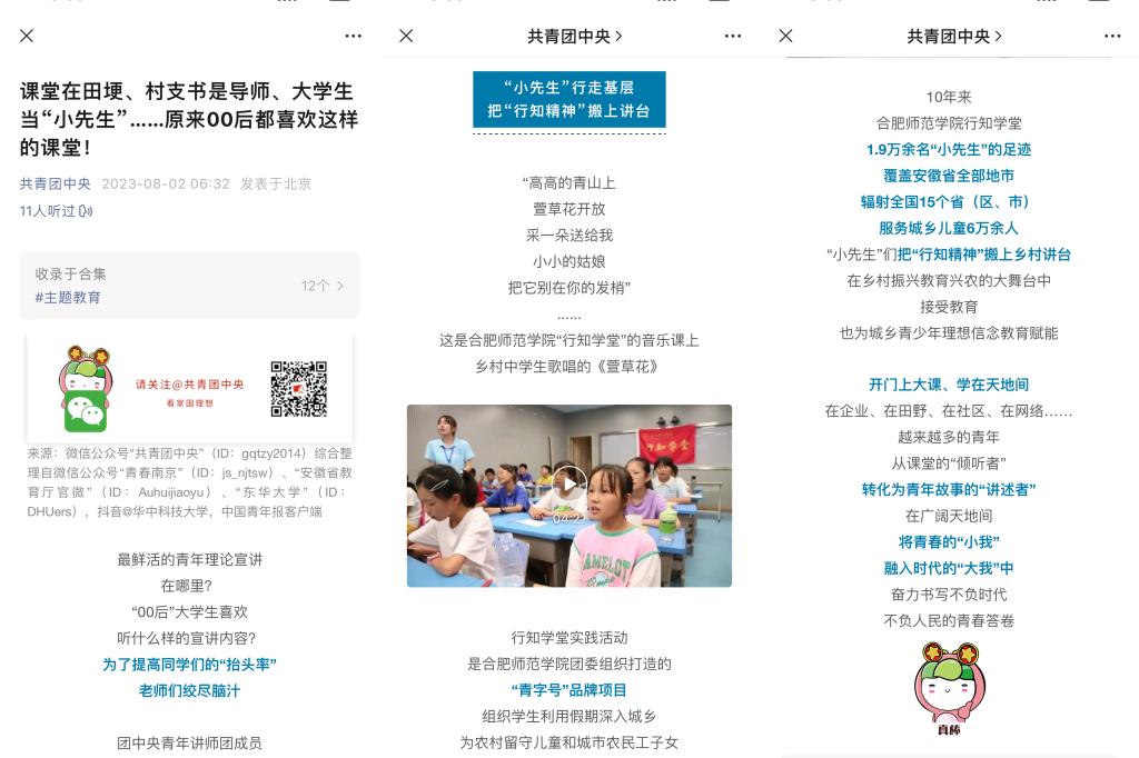 【共青团中央微信号】报道我院“行知学堂”实践活动