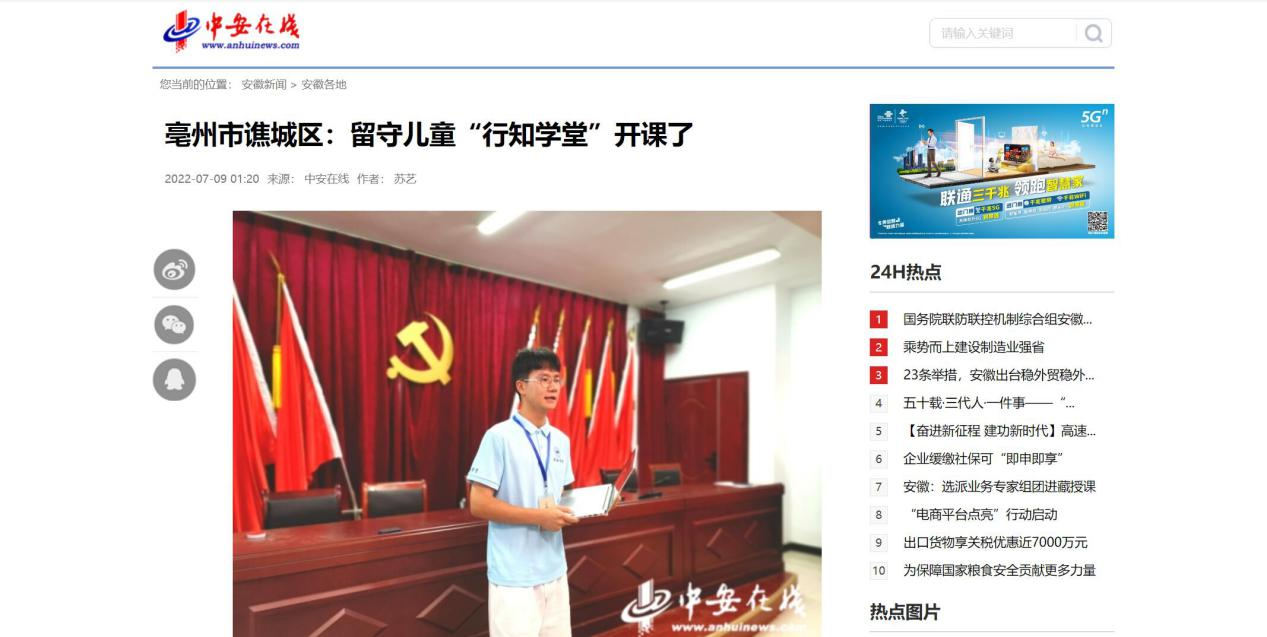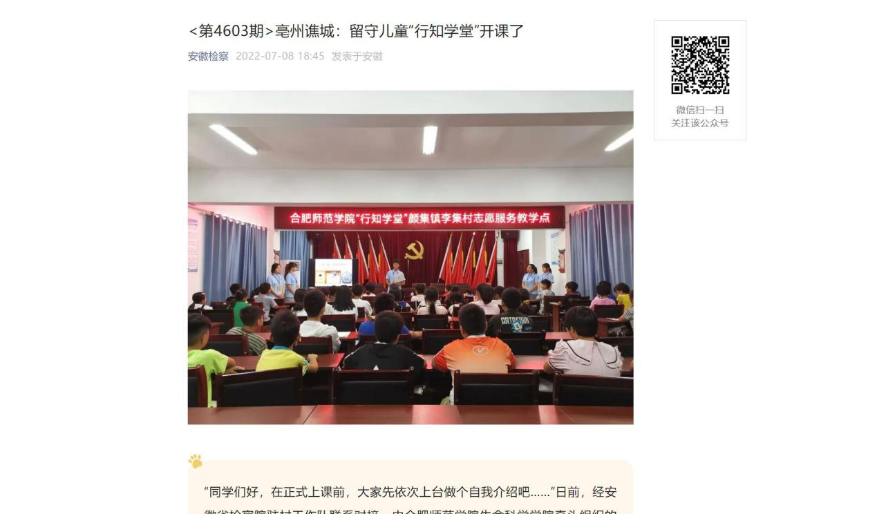 本网讯 近日,生命科学学院牵头举办的亳州市谯城区开办的“颜集行知学堂”成功开班,引起了社会各大媒体的广泛关注。《安徽日报》、《新安晚报》、《中安在线》等多个媒体对此进行报道,安徽省人民检察院官方微信公众号转载报道。