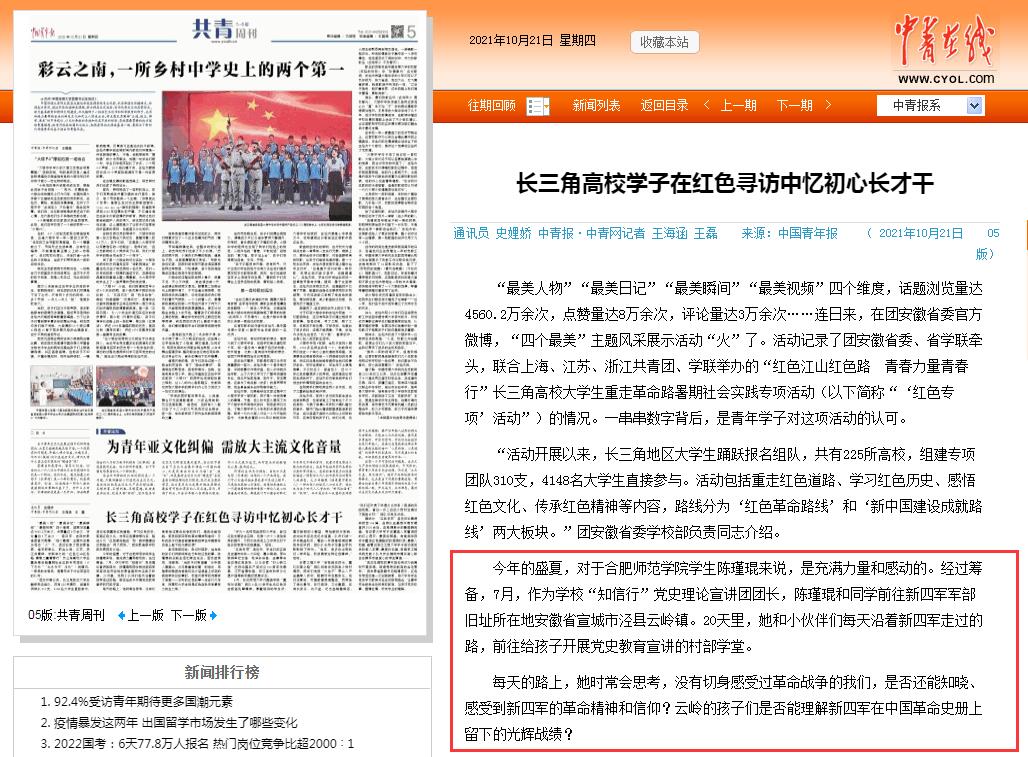 【党史学习教育】中国青年报报道我院党史学习教育暑期专项社会实践活动