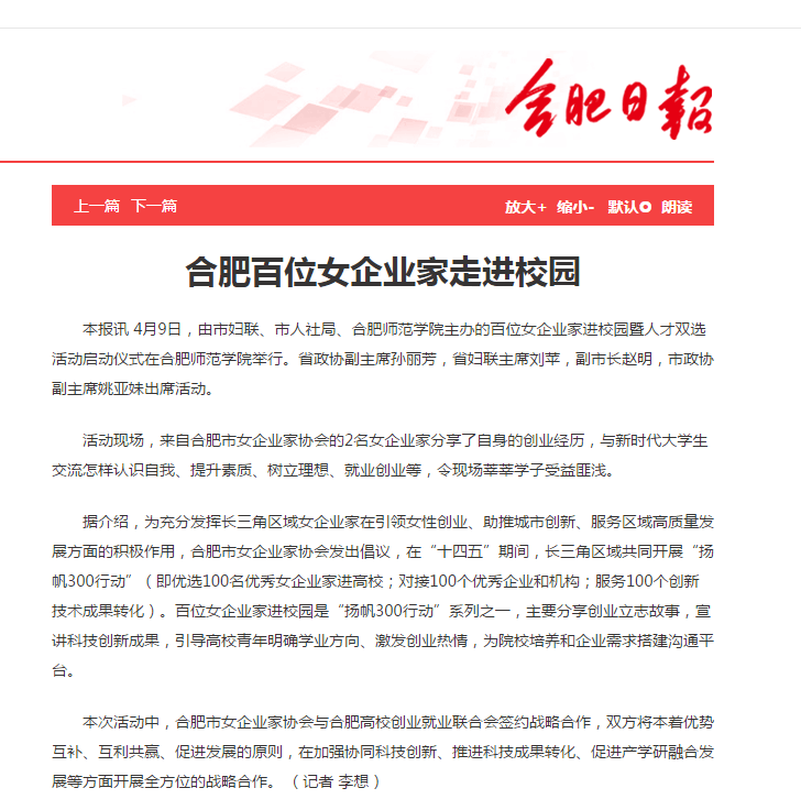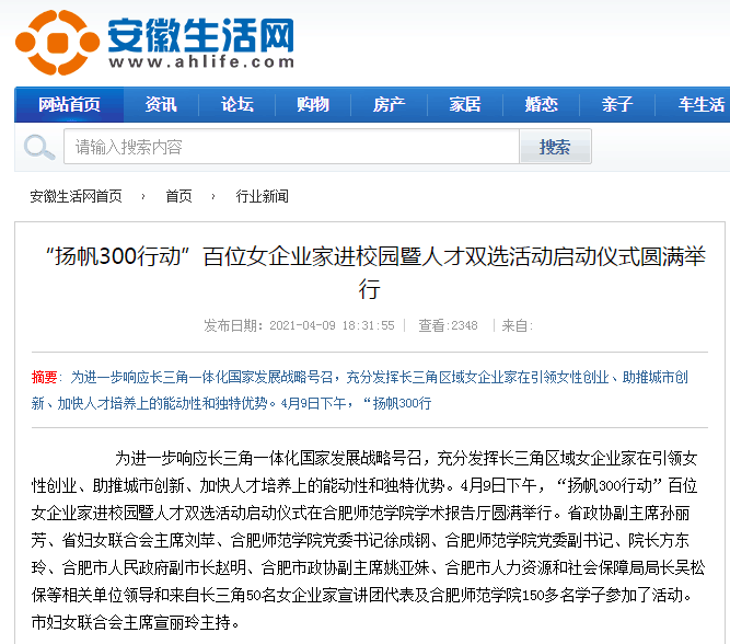 中国妇女报、安徽图片网、安徽生活网、东方头条安徽综合、合肥日报等媒体对此进行了报道。(就业创业工作处)