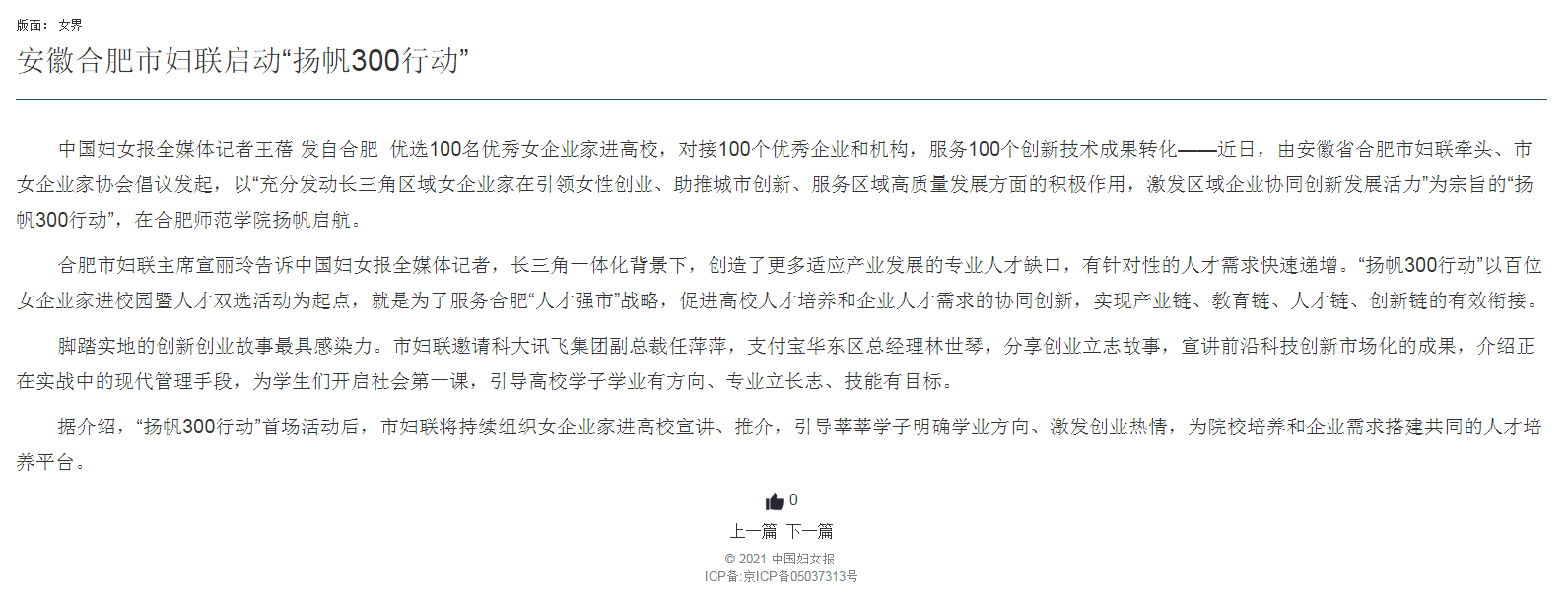 新闻链接:http://epaper.cnwomen.com.cn/html/2021-04/12/nbs.D110000zgfnb_1.htm#nw.D110000zgfnb_20210412_2-3.htm?time=1618187861555