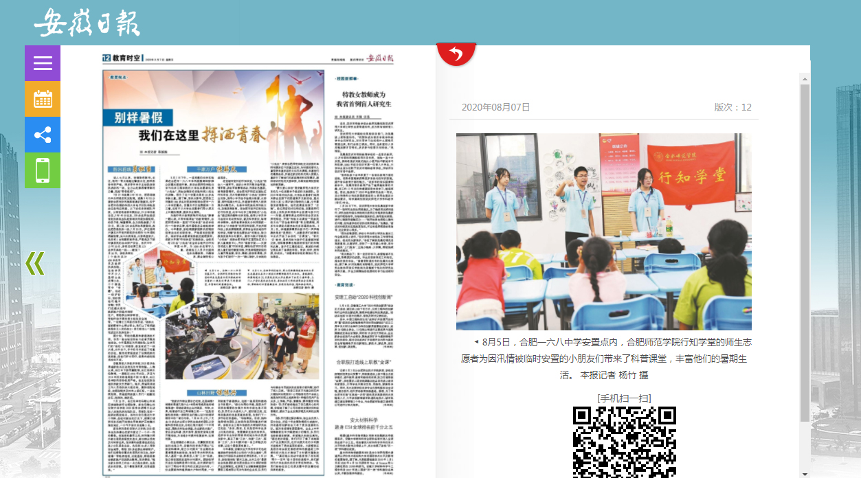 安徽日报报道beat365官网暑期“行知学堂”实践活动