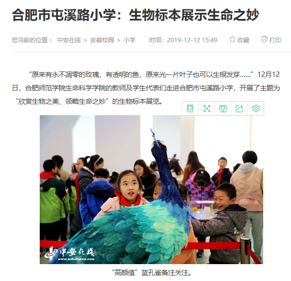 本次标本展得益于beat365在线唯一官网与包河区教体局的战略合作协议,由挂职副校长孙娴老师搭建了合作平台,活动得到了屯小领导班子及广大师生的大力支持,受到了屯小师生的热烈反响。