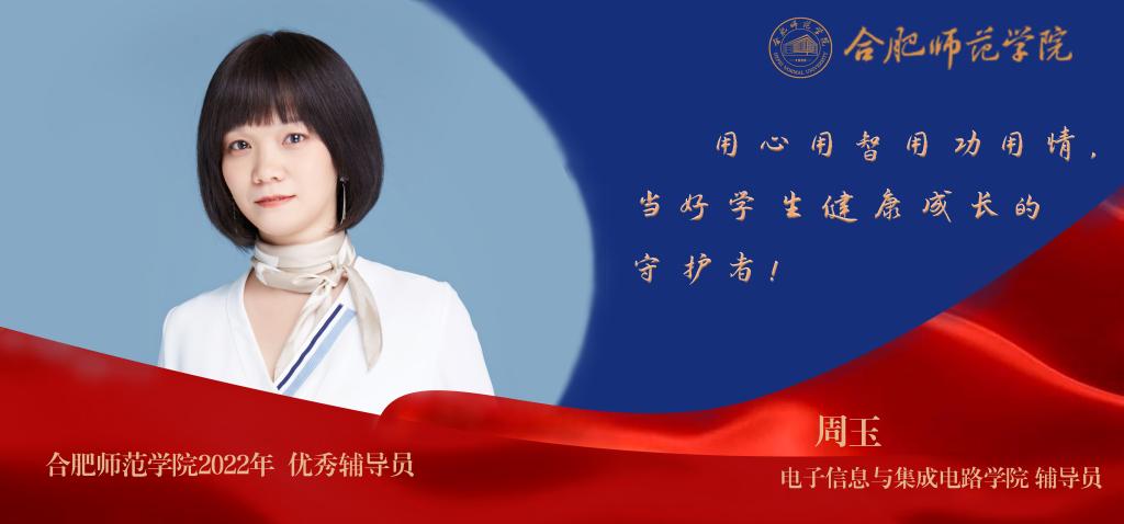 周玉,女,汉族,中共党员,硕士,讲师,国家二级心理咨询师、国家就业职业指导师、国家人力资源师、创新创业导师和互联网营销师。中国国际“互联网+”创新创业大赛国赛评委、编写书籍《新媒体时代大学生就业创业指导研究》等创新创业方面书籍。周玉从事辅导员工作10年来,始终坚守辅导员的岗位职责,坚持做学生之师、学生之伴、学生之友,她打造精品项目与品牌载体助力学生成长,实现学生德育工作全过程管理;她引导学生坚持理论与实践相结合,坚持带领学生开展暑期社会实践和专业实践活动,培养学生全面发展。她用自己的一言一行,诠释了一个普通辅导员的价值。
